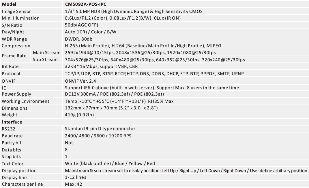 - DC12V, Support POE function (included Lenses, Bracket)